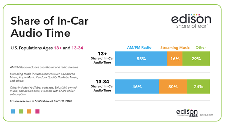 EDISON: As Of Q1 2026, 55% of In-Car Audio Time Is Spent Listening To AM/FM Radio