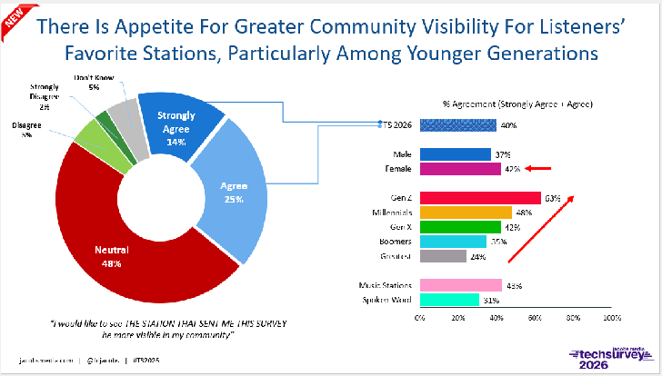 FREE WEBINAR: Jacobs Media / Quu to Present the Techsurvey 2026 Results JOCKLINE, APRIL 14TH, 2026 – Jacobs Media will present its Techsurvey 2026 results in a free webinar on Thursday, April 23, at 2pm Eastern, 11am Pacific. This year’s annual study yielded nearly 31,000 surveys among core radio listeners from more than 500 participating U.S. stations. It explores broadcast radio's role in the expanding, and increasingly crowded, digital, audio and video landscape. Techsurvey 2026 explores new questions on local and street visibility, YouTube usage and short-form videos, concert attendance, updated in-car dashboard access/usage, specifically Apple CarPlay & Android Auto, and preferred podcast services. This year’s study will also continue to trend on key variables: media device ownership and media usage, including on-demand media, push notifications, and online newsletters—by generations, by gender, and by format. Jacobs Media President Fred Jacobs notes, "Our Techsurvey 2026 mega sample weighs in on push notifications and we are pleased with these positive responses. Push is another way for a radio station to get attention in an over communicated world." Jacobs adds, “We hope you can join our free webinar on Thursday, April 23, as we reveal these important insights and more. Bring the entire staff along.” Techsurvey 2026 is presented in partnership with Inside Radio and is sponsored by Quu. To join the webinar, you MUST click the link to register HERE
